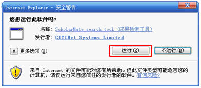(4) 如果你的网页浏览器的安全警告提示是否要运行跨文献库检索工具,请点击 【运行】按钮继续安装。